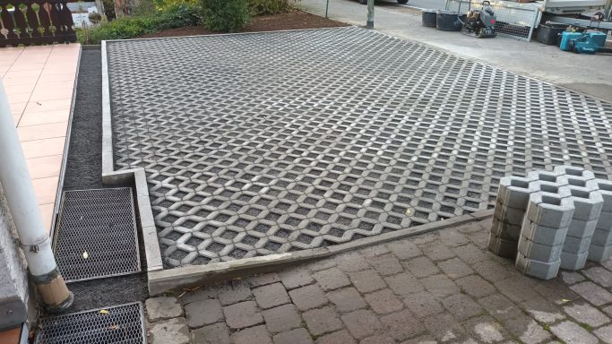 Auskofferungen für Hofeinfahrten und Parkplätze übernehmen wir gerne für Sie.  Auch die anschließenden Pflasterarbeiten führen wir durch, falls gewünscht. Ob mit herkömmlichen Rechteckpflaster oder mit Rasengittersteinen