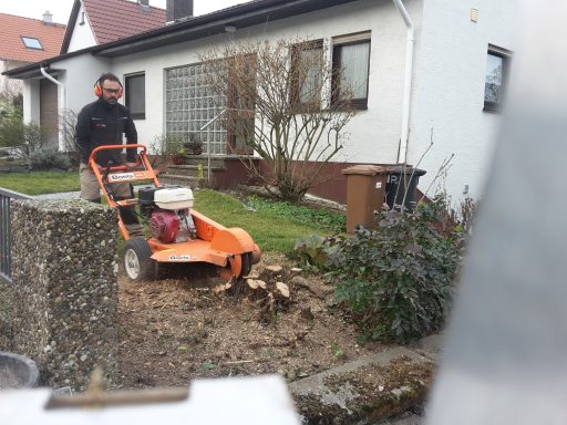 Soll der Baumstumpf mit entfernt werden, so kann dies gleich mitgemacht werden mittels Wurzelhobel und dem Minibagger, oder alternativ mittels Wurzelstockfräse.