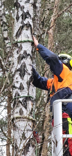 Baumabtragungen können mittels Hubarbeitsbühne durchgeführt werden. Stückweise, auch mittels sogenanntem Rigging, damit es zu keinen Beschädigungen im Garten oder an Gebäuden kommt