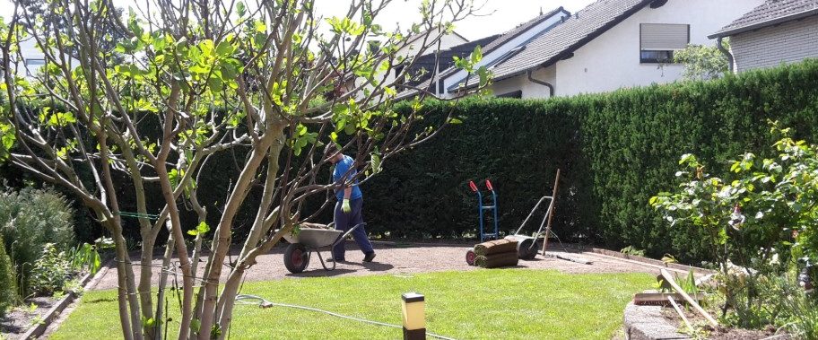 nach dem Abschälen des Altrasens wird der Boden mittels Muttererde und Bodenaktivator aufgearbeitet und neu eingeebnet. Danach erfolgt die Rollrasenverlegung. So ist das schnellste und qualitativ beste Ergebniss sofort sichtbar